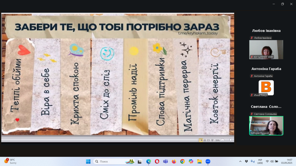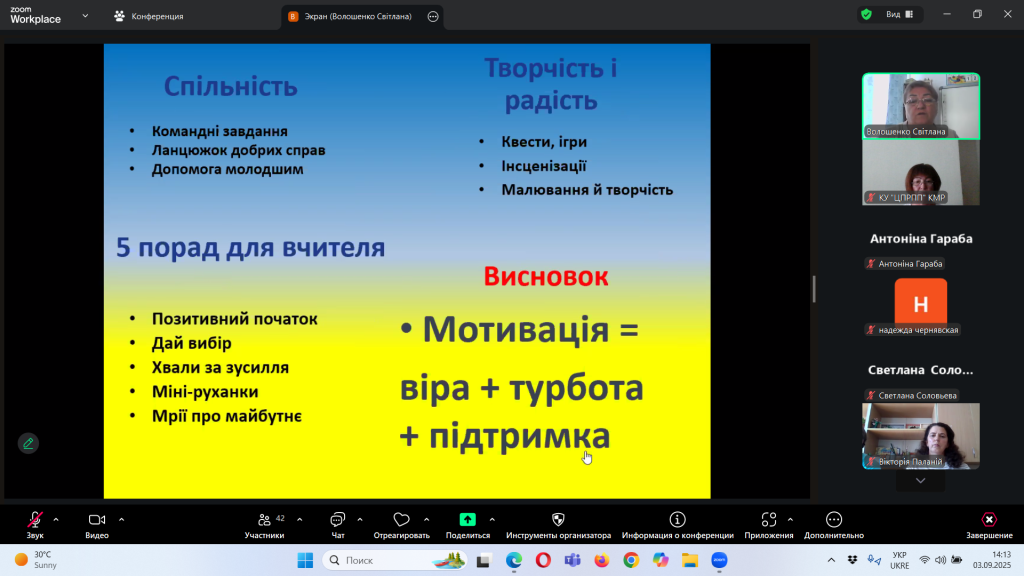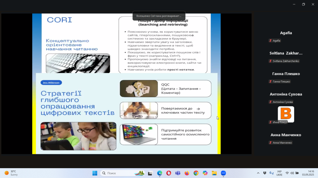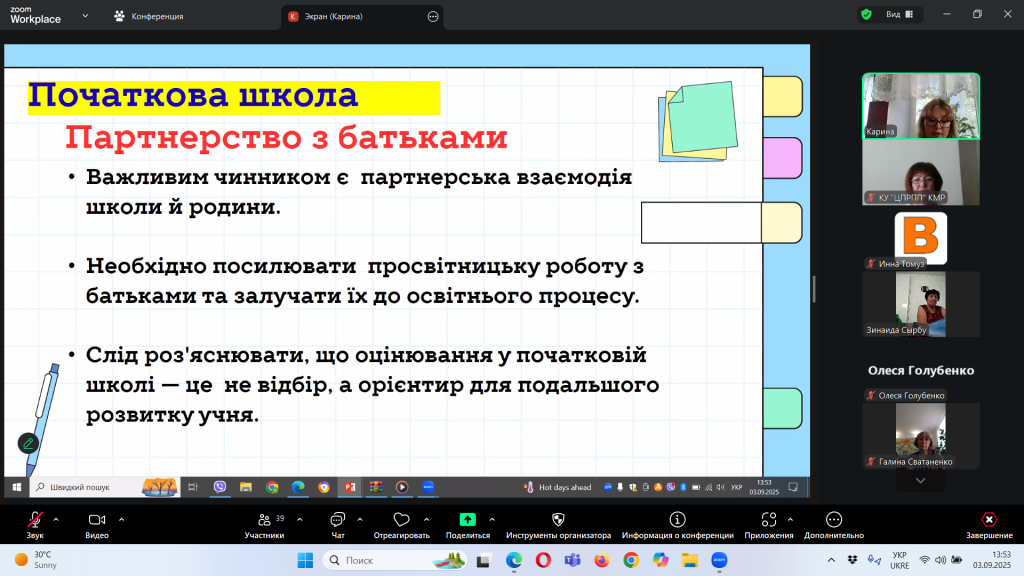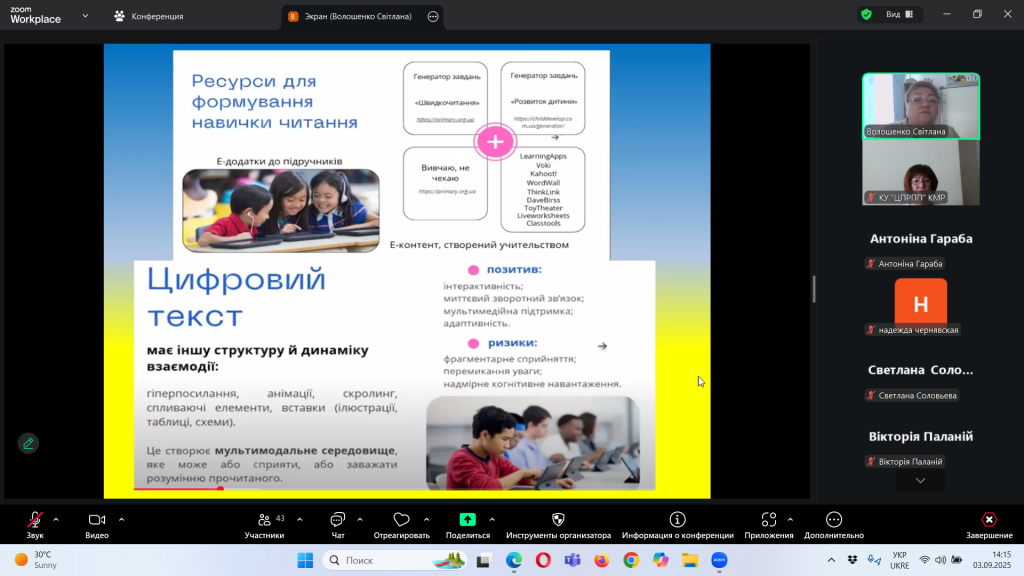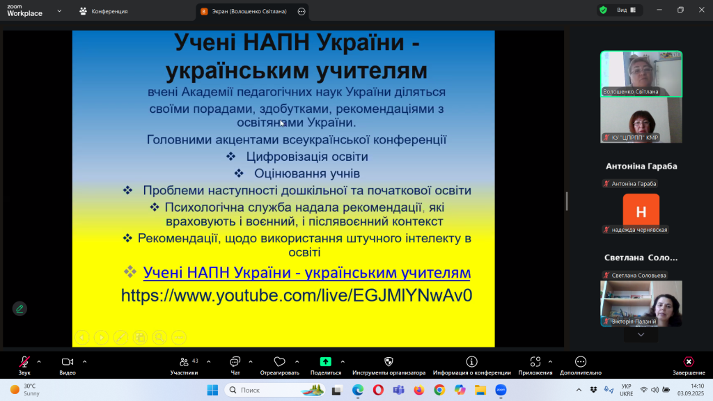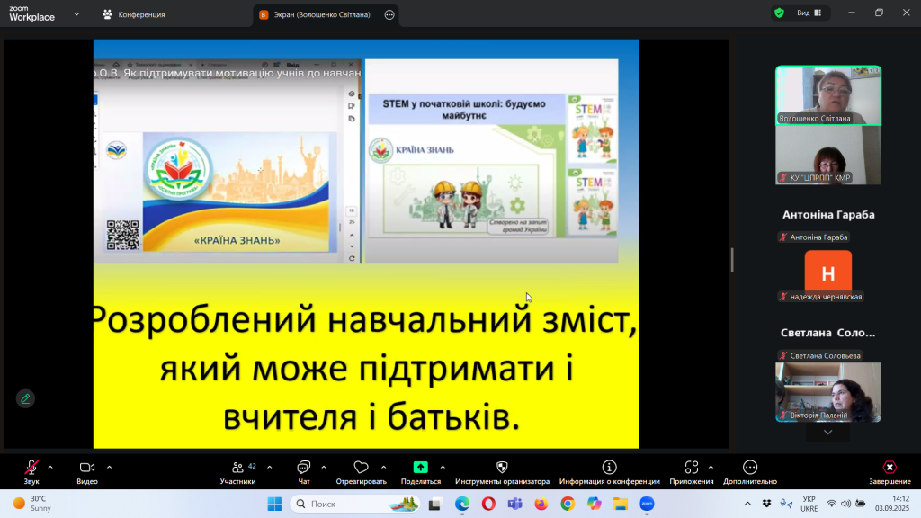 На виконання наказу Відділу освіти та молодіжної політики Кілійської міської ради «Про підготовку закладів та установ освіти Кілійської міської ради до початку 2025/2026 навчального року», відповідно до плану роботи Комунальної установи «Центр професійного розвитку педагогічних працівників» Кілійської міської ради, за координації консультантки Олени Барладян, 03 вересня 2025 року, з метою забезпечення продуктивного старту нового навчального року, підтримки вчителів, у режимі онлайн на платформі Zoom, було проведено територіальний інструктивно – методичний вебінар для заступників директорів з навчально – виховної роботи, учителів початкових класів закладів загальної середньої освіти Кілійської міської ради на тему «Методичний супровід організації освітнього процесу в 1-4 класах закладів загальної середньої освіти в 2025/2026 навчальному році».