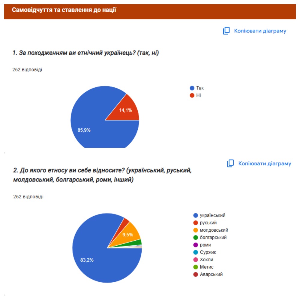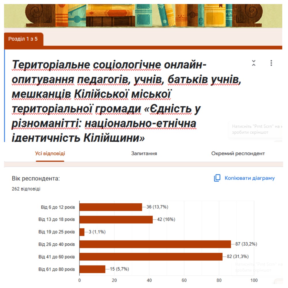 2) територіальне соціологічне онлайн-опитування учасників освітнього процесу закладів освіти Кілійщини та її мешканців на тему «Єдність у різноманітті: національно-етнічна ідентичність Кілійщини»;