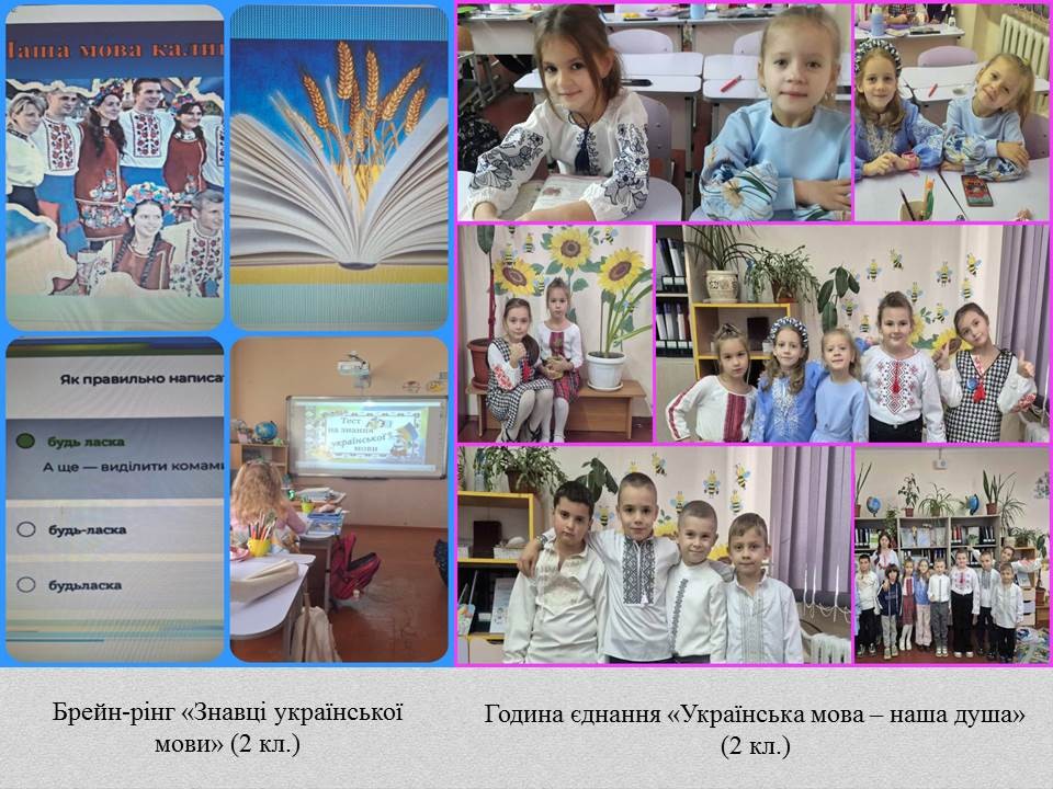 3) мовознавчий квест «Подорож до країни рідної мови» (Кілійський заклад загальної середньої освіти № 2); бліц-вікторина «Ми знаємо українську мову» (Опорний заклад освіти Шевченківський заклад загальної середньої освіти № 2);