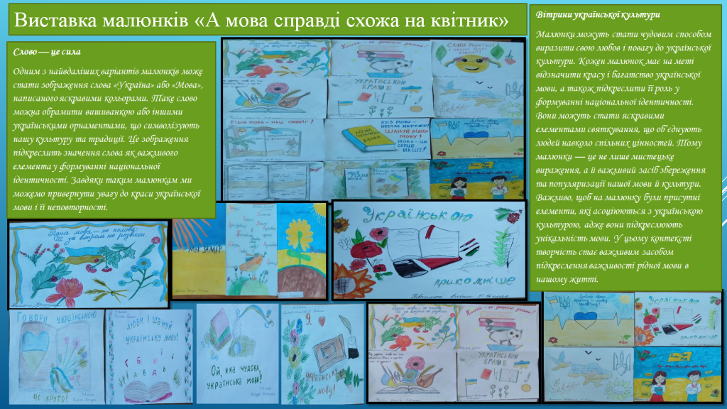 7) виставка малюнків «А мова справді схожа на квітник» (Кілійський заклад загальної середньої освіти № 2).