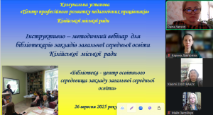 На виконання наказу Відділу освіти та молодіжної політики Кілійської міської ради «Про підготовку закладів та установ освіти Кілійської міської ради до початку 2025/2026 навчального року», відповідно до плану роботи Комунальної установи «Центр професійного розвитку педагогічних працівників» Кілійської міської ради, за координації консультантки Дайни Горбан, 26 вересня 2025 року, з метою забезпечення продуктивного старту нового навчального року, підтримки бібліотекарів, у режимі онлайн на платформі Zoom, було проведено територіальний інструктивно – методичний вебінар для бібліотекарів закладів загальної середньої освіти Кілійської міської ради на тему «Бібліотека – центр освітнього середовища закладу загальної середньої освіти» (керівниця територіальної професійної спільноти бібліотекарів закладів загальної середньої освіти – Дмитрієва Карина Миколаївна, бібліотекарка Кілійського закладу загальної середньої освіти № 2 Кілійської міської ради).
