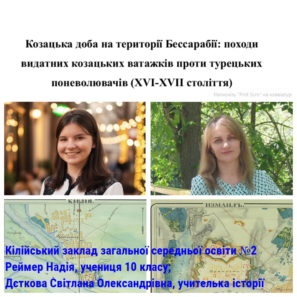 За підсумками обласного конкурсу краєзнавчо-дослідницьких робіт у рамках ІІ (регіонального) туру Всеукраїнської краєзнавчої експедиції учнівської молоді «Моя Батьківщина – Україна», напрям «Козацькому роду нема переводу», переможницею (ІІ місце) визнана Реймер Надія, учениця 10 класу Кілійського закладу загальної середньої освіти № 2, назва дослідницької роботи «Козацька доба на території Бессарабії: походи видатних козацьких ватажків проти турецьких поневолювачів (XVI-XVII століття)», керівниця краєзнавчо – дослідницької роботи Дєткова Світлана Олександрівна, учителька історії (наказ Одеського обласного гуманітарного центру освіти та виховання від 02.12.2025 № 183-ОД).